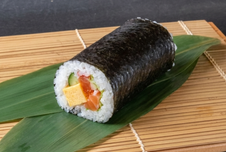 具材:海老、サーモン、紅ズワイ蟹、飛子、玉子焼き、胡瓜、レタス、玉葱スライス、マヨネーズ