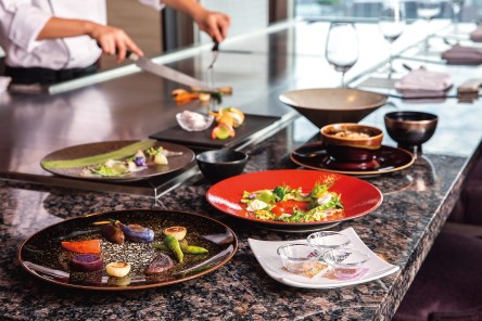 目の前で繰り広げられるシェフの妙技と、鉄板から立ち上る香ばしい香り。