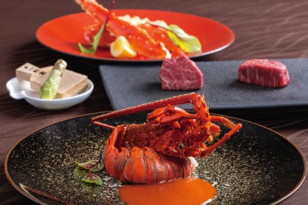 厳選和牛をタラバ蟹や伊勢海老といった海の幸とともに存分にお愉しみいただけます。