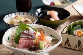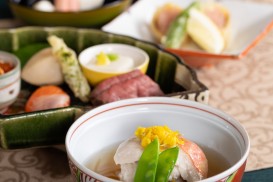 | 八 寸 | 柚子豆腐 海老芋旨煮 白魚磯辺揚げ 干し柿と粟麩の白和え 信州サーモン手毬寿司 ローストビーフ |