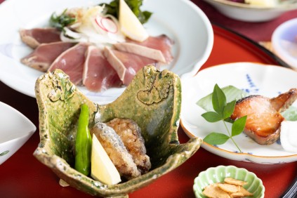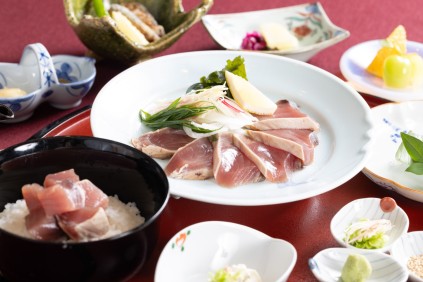 土佐を代表する味覚を信州の料亭の技で彩る御膳に。 旬を直送 戻り鰹づくしの御膳を存分にお楽しみください。