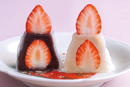 上品な甘さの白あん、風味豊かなこしあんが、みずみずしい苺をそっと包みます。