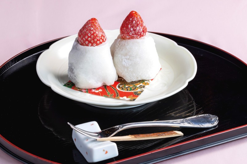 2月はレストラン4店舗&ショップ&ラウンジで苺フェア開催! 料亭深志楼からは、料亭の技が光る苺大福セットが登場。上品な甘さの白あん、風味豊かなこしあんが、みずみずしい苺をそっと包みます。