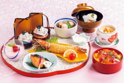 4月はレストラン4店舗で「旬の食材 春色フェア」開催。料亭深志楼からは、お造り、焼き物、煮物、揚物、ちらし寿司、水菓子など、料亭の味を気軽に味わっていただける四つ切弁当をご用意いたします。
