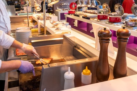 シェフのライブパフォーマンスとともに焼きたて鉄板メニューをお楽しみください!