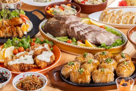 | Sweets | 日向夏のプチケーキ 日向夏のパンプディング マンゴーロールケーキ マンゴープリン 抹茶のプチガトー いちごのミルクレーム いちごのゼリーorピーチゼリー フルーツ入り杏仁豆腐 パンケーキ ストロベリーホイップ わらび餅 チョコパンナコッタ クリームチーズのブルスケッタ 抹茶ぷりん ストロベリーブラウニー ブラウニー チーズケーキ プチガトー プチパフェ ※上記から10品提供 |